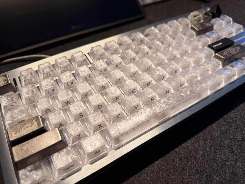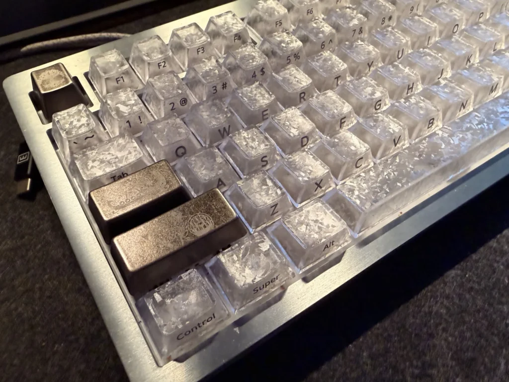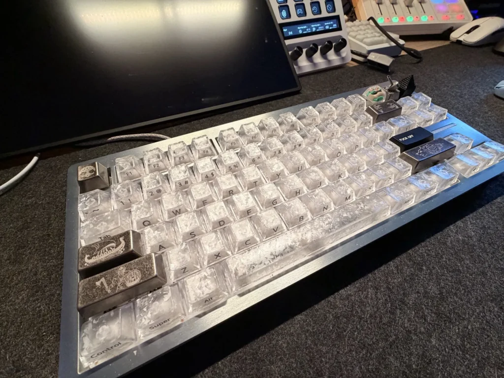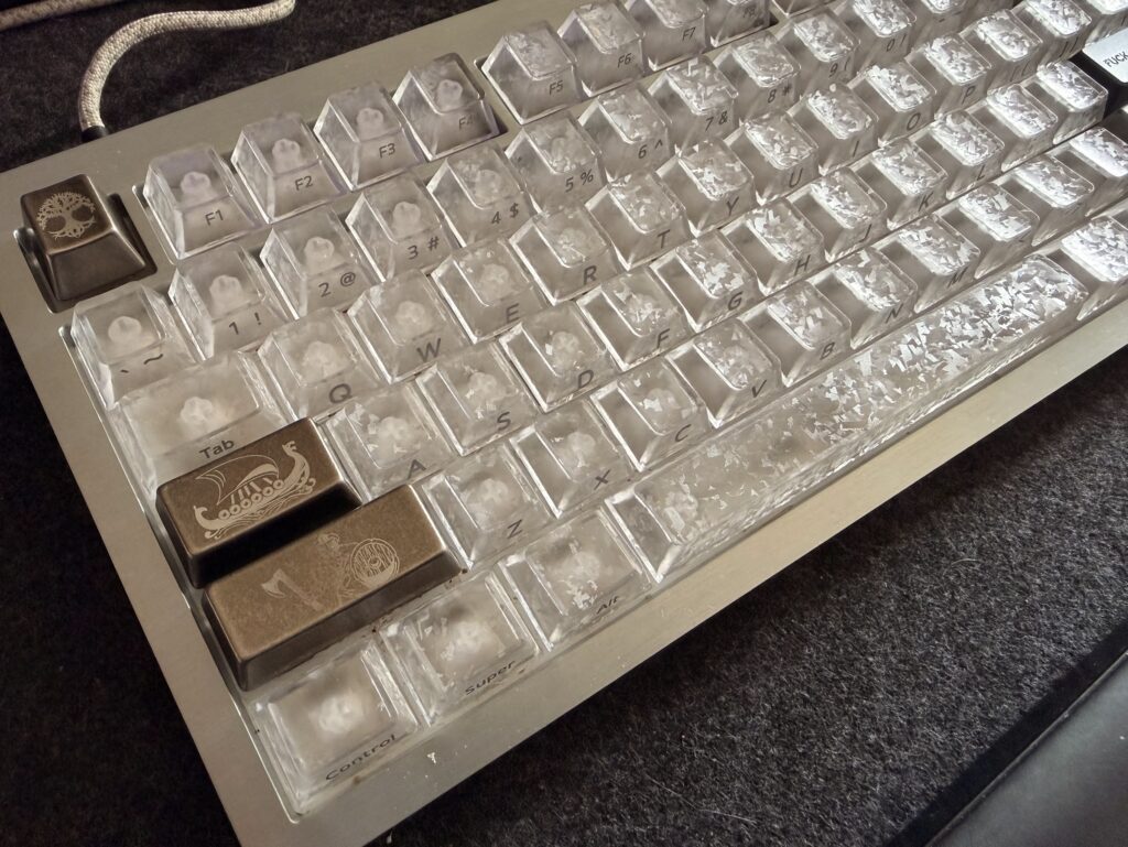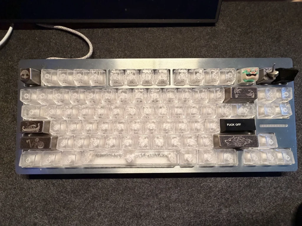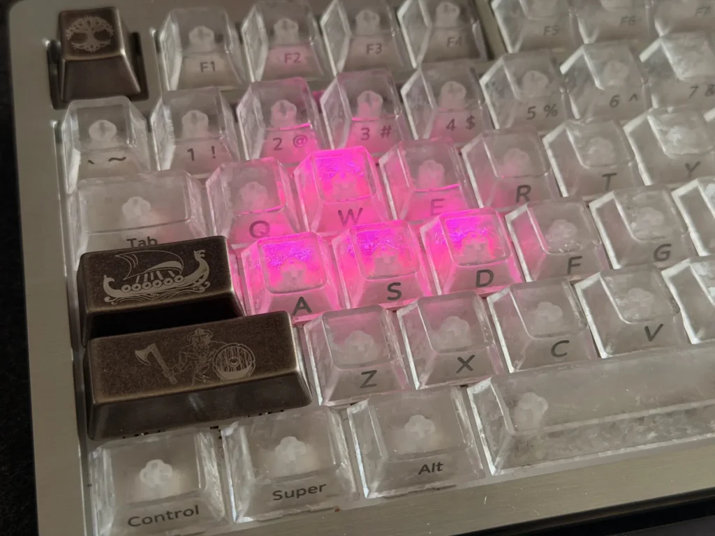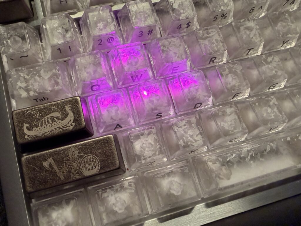 Paired with Awekeys Viking silver accents and a brushed silver zinc Wooting case, this build ended up feeling like pure endgame. Ice, metal, glow, texture, and a sound profile that actually backs up the look. That is not something I get to say often with transparent keycaps.