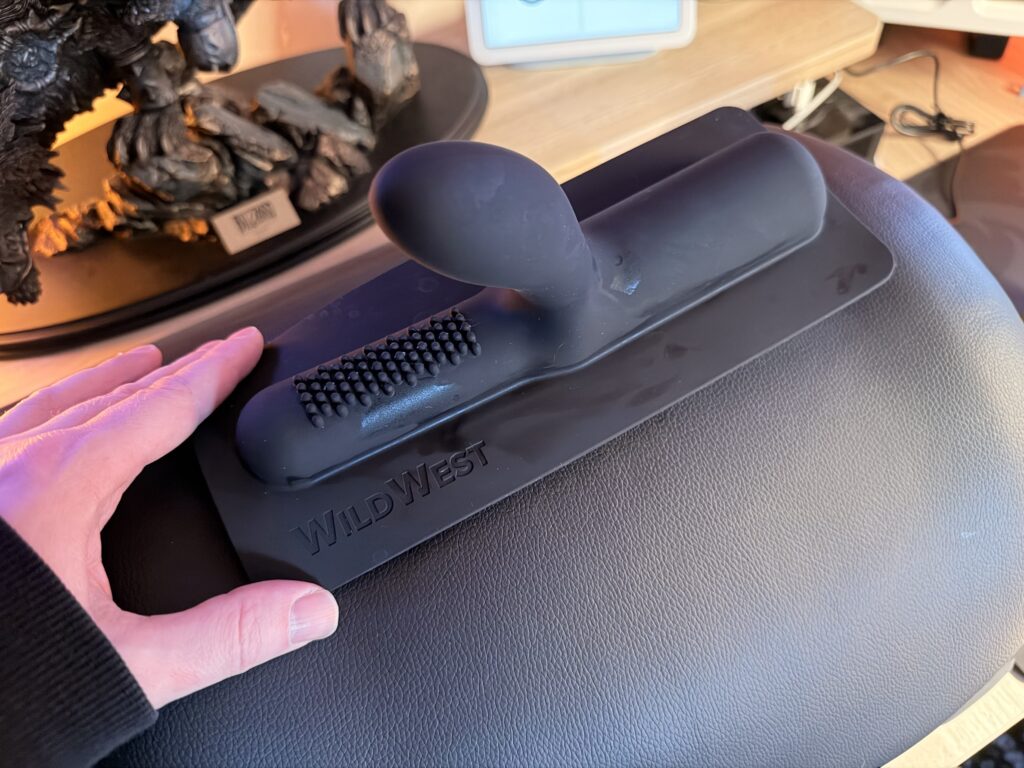 Nobody looks at a machine shaped like this and goes, “Ah yes, a product with mysterious use cases.” The core pitch is obvious. This is built around a woman being able to sit on it, ride it, grind on it, play with angle and pressure, and let the machine do what machines do best, which is repeat an action harder and longer than a human hand ever wants to. That part is not hidden. The included attachments reflect that too. Rawhide is the external option. Wild West is the insertable option.