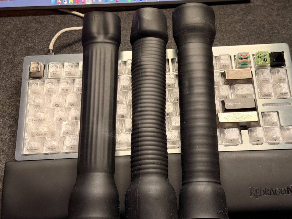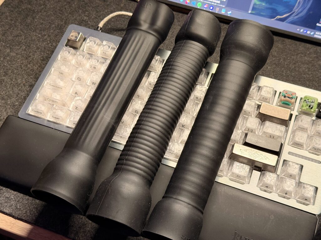 the Glide Rail’s ribs run vertically along the sleeve. This means instead of a series of rapid bumps, you get long continuous lines of pressure running up and down your shaft. The result? A calmer, steadier stimulation that doesn’t overwhelm you as quickly. In my test sessions, the vertical ribs felt smoother and less intense than the default ribbed sleeve: a bit like a slow massage. If you’ve ever tried the ultra-thin latex liner sleeves (known for their gentler, more hugging sensation), the Glide Rail lands somewhere in between those and the original silicone ribbed sleeve in terms of intensity.